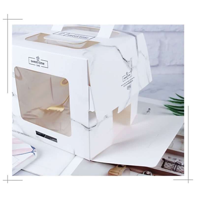 Wholesale 4/5/6/8Inch Handle Marble Paper Mousse Cake Box With Window