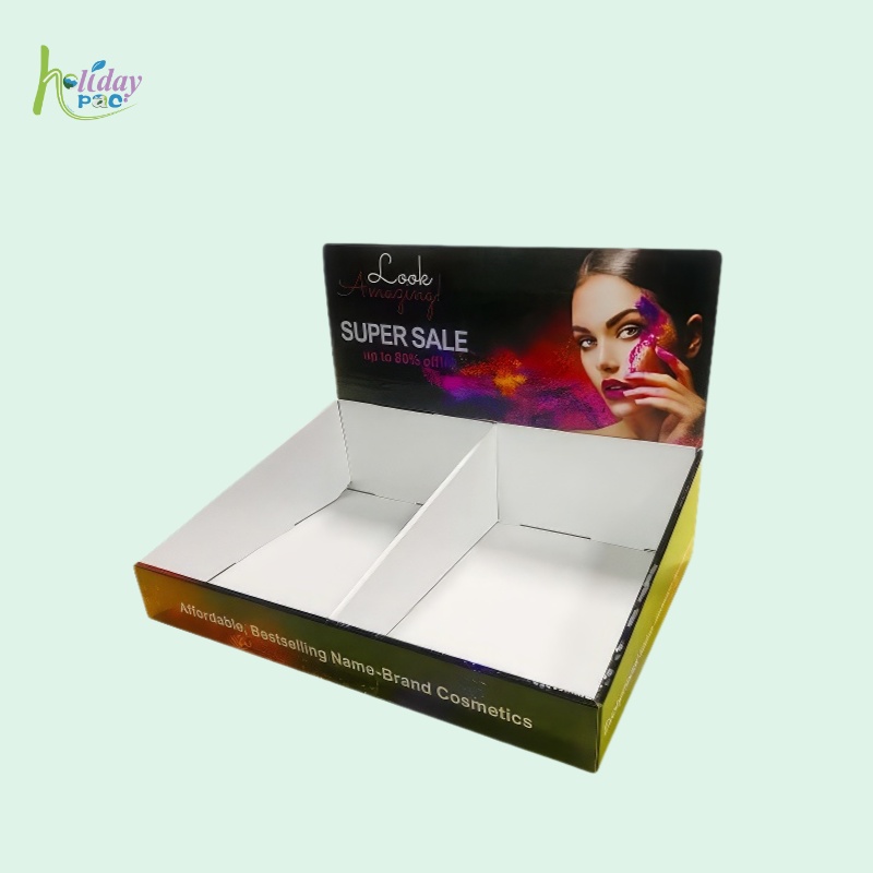 Shape your beauty product display concepts into impressive designs—contact us now to evaluate your requirements, and we’ll settle on a tailored quote. holidaypac will create a top-notch, client-centered Custom Cosmetic Cardboard Small Template Pop Up Display Boxes!