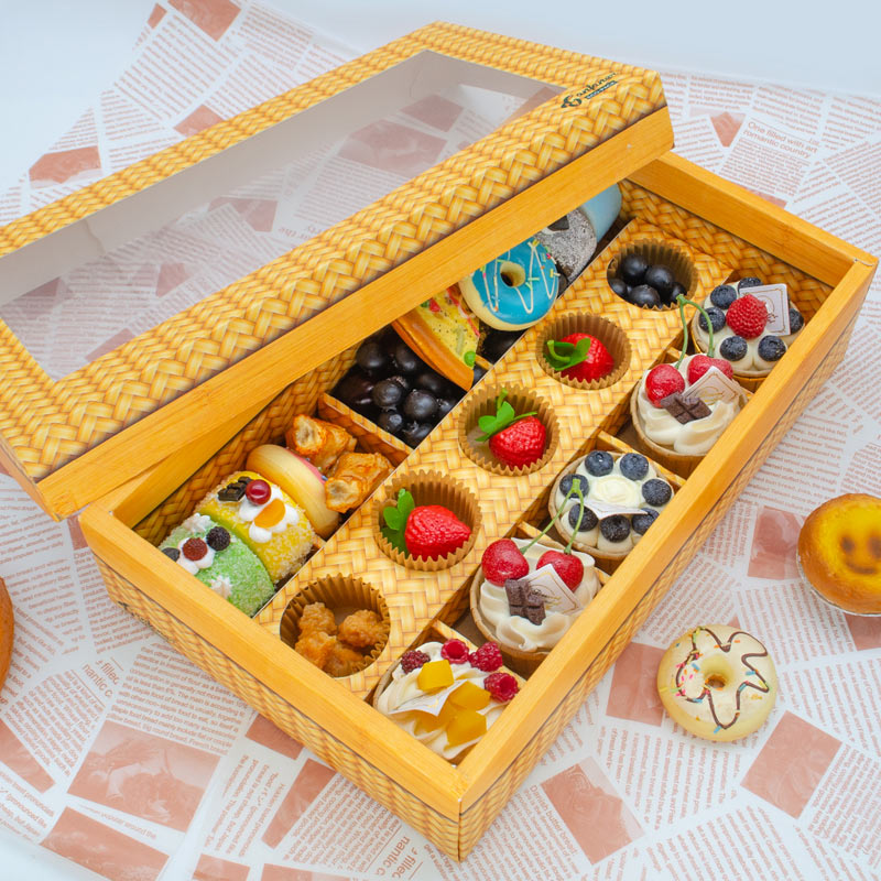 2. Bamboo-woven food box, the lid is designed with transparent windows, and you can see the exquisite food inside.